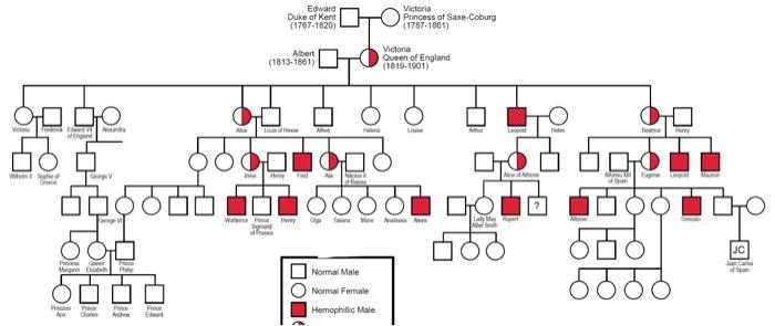 The gene for hemophilia was either passed down to victoria by her father or it spontaneously appeared i especially enjoyed how in depth they went into the family trees, especially in the spanish royal family. Of victoria's four sons, only the youngest inherited hemophilia. Because tsarina alexandra's daughters died before being able to have children we will never know if they were carriers of hemophilia. Leopold's daughter alice was a carrier. In the ensuing quest to produce heirs, prince edward, the fourth son of george iii, married victoire at the age of 51;